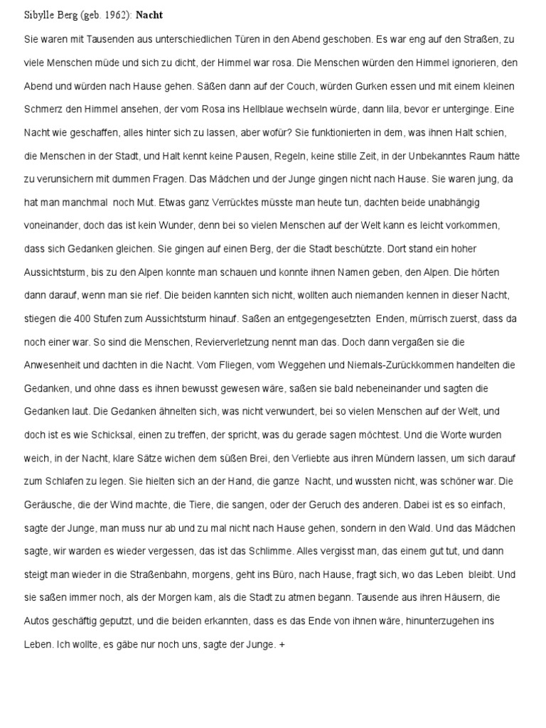 Interpretation Der Kurzgeschichte Nacht Von Sibylle Berg Interpretation